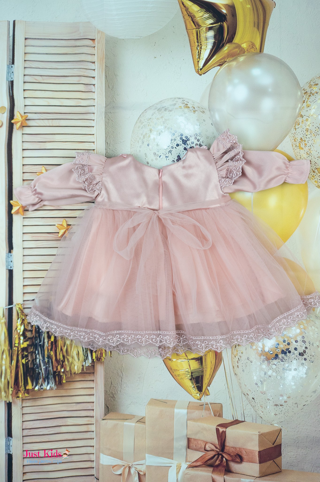 Această rochiță de botez elegantă, într-o nuanță delicată de roz pudrat, este ideală pentru cele mai importante evenimente din viața micuței tale. Setul include o rochie rafinată, decorată cu dantelă fină și detalii brodate pe tiv, oferind un aspect deosebit. În partea de sus, rochia are un design deosebit cu aplicații de mărgele, paiete și flori tricotate, adăugând o notă de eleganță. Setul vine completat cu un aoleo asortat, perfect pentru a oferi un plus de stil și căldură în zilele mai răcoroase. În plus setul conține o bentiță si căciuliță asortate. Această ținută specială este alegerea perfectă pentru botezuri și alte evenimente festive, îmbinând confortul cu un look fermecător.